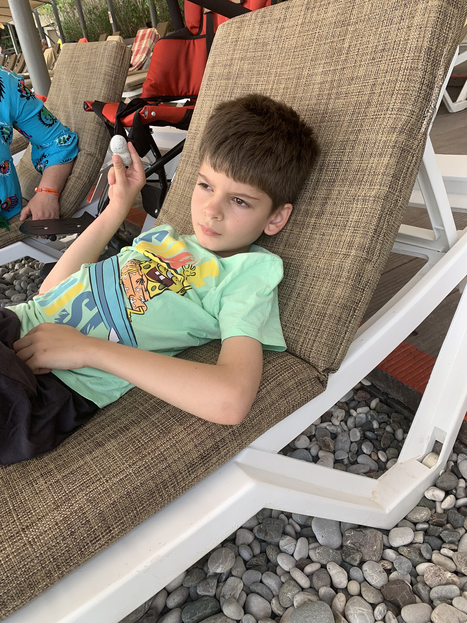 Ne jucăm cu pietre, cu pahare din carton, ne gâdilăm… dar nu părăsim șezlongul :))